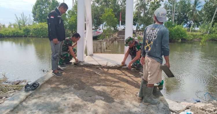 Di lokasi, personel TNI bersama warga tampak kompak mengangkut material, mulai dari pasir, batu hingga semen. Proses pengecoran dilakukan secara manual dengan penuh kehati-hatian, bahkan sebagian material harus diangkut menggunakan perahu kecil untuk menjangkau titik pekerjaan di seberang sungai.
